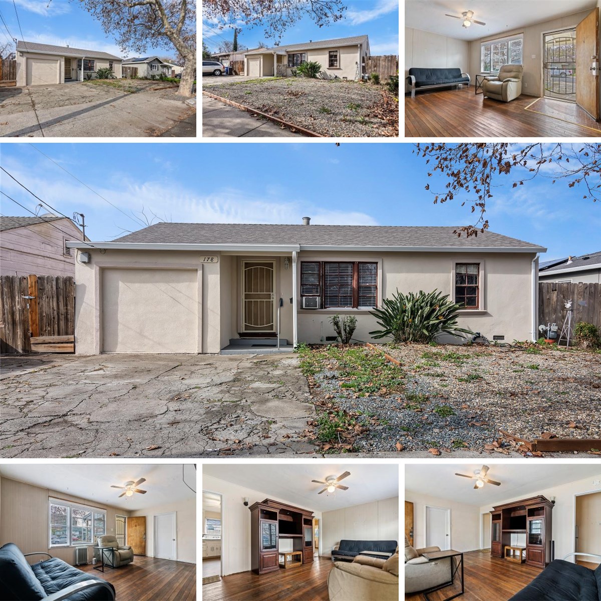 This home offers a great opportunity to add value and make it your own. Originally a 2-bedroom, 1-bath home with a garage, it has been converted to a 3-bedroom layout, adding approximately 270 sq ft for a total estimated living space of 1,117 sq ft. The exterior was updated with stucco a few years ago, and a new roof was installed this year, providing a solid starting point for future improvements. The property backs to the Pittsburg High School ball field and features a tall cement wall for privacy. Ideal for buyers looking for potential, customization, and a chance to create a home that fits their vision.